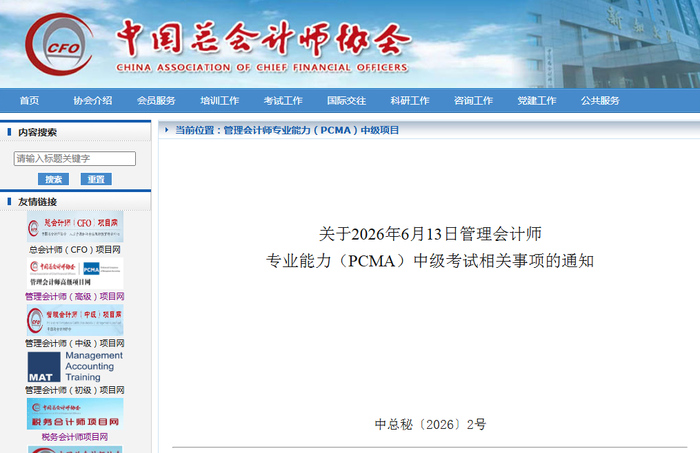 为确保中国总会计师协会(以下简称中总协)2026年第一次管理会计师专业能力(PCMA)中级考试顺利进行,现将考试相关事项通知如下: